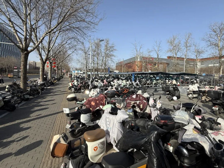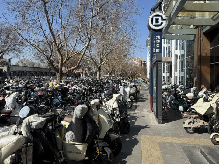 3月3日晚岑岭,记者来到丰台区新宫地铁站。刚走出地铁口,一派密密匝匝的电动车便映入眼帘。进出口邻近的东谈主行谈和非生动车谈角落停满车辆,红、蓝、黑等各色车身交汇在一齐,从站口一齐延长近百米,却看不到彰着的分区标识或开拓牌。
