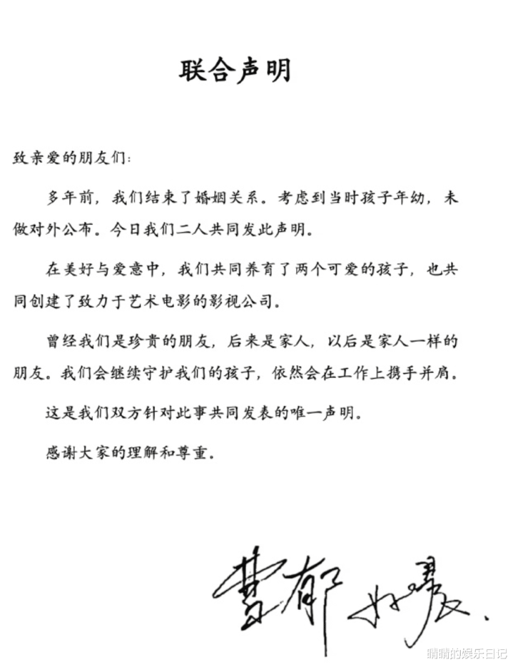 但比起这出乎预想的音问自己,更让东说念主唏嘘的是声明中另一句话:“多年前,咱们铁心了婚配相关。斟酌到那时孩子年幼,未作念对外公布” 。